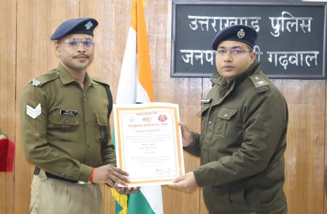 वर्ष 2025 में प्रयागराज में आयोजित महाकुंभ मेला के दौरान कर्तव्य, समर्पण एवं अनुशासन की मिसाल पेश करते हुए पौड़ी पुलिस के मुख्य आरक्षी (दूरसंचार) सचिन कुमार, मुख्य आरक्षी (दूरसंचार) नितिन कुमार एवं अग्निशमन विभाग के पुष्पेन्द्र तोमर द्वारा इस महाकुंभ के दौरान अपनी जिम्मेदारियों का निर्वहन पूर्ण निष्ठा, सतर्कता एवं उत्कृष्ट कार्यशैली के साथ किया, जिसके परिणामस्वरूप उन्हें मा0 मुख्यमंत्री उत्तर प्रदेश द्वारा “महाकुंभ सेवा मेडल” से सम्मानित किया गया।