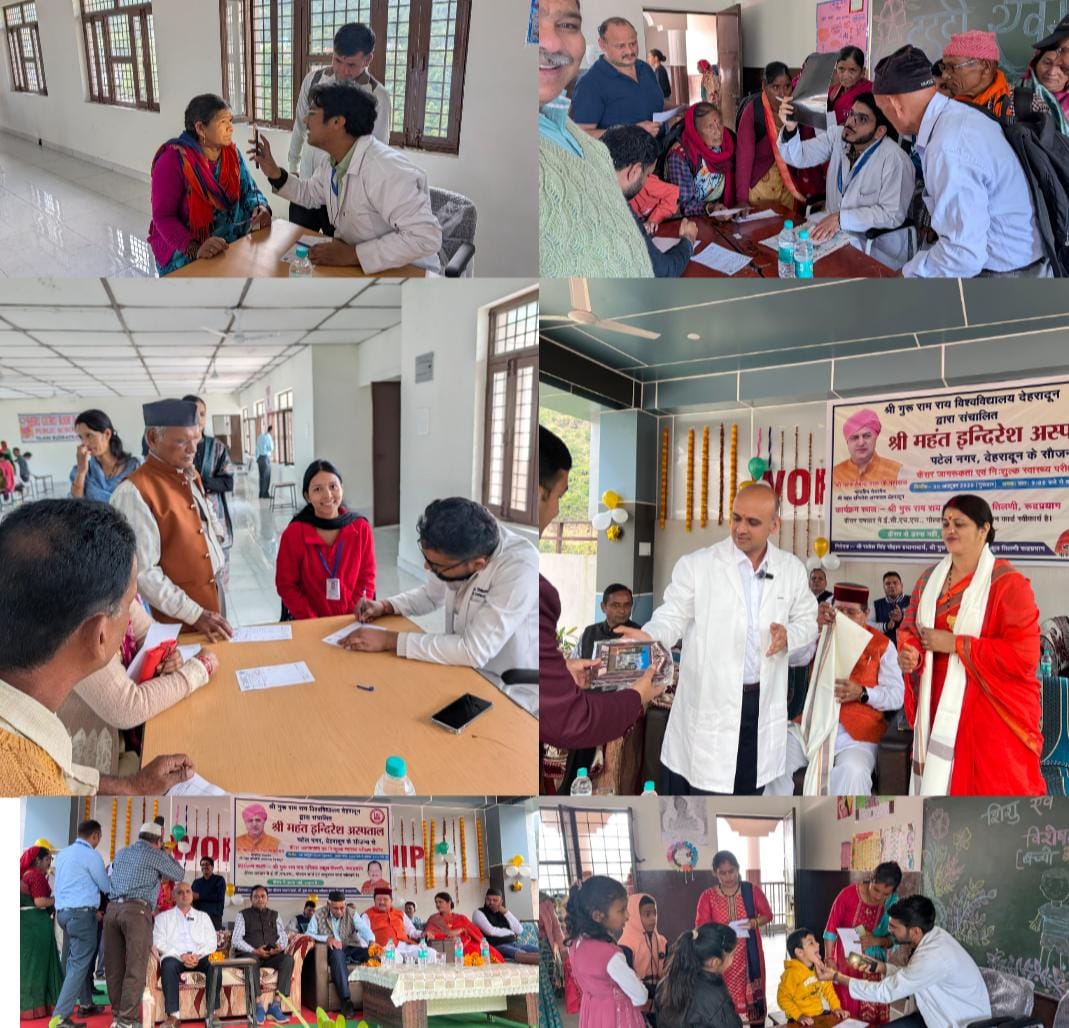 गुरुवार को शिविर का शुभारंभ मुख्य अतिथि भरत चौधरी, विधायक, रुद्रप्रयाग, पूनम कठैत, जिला पंचायत अध्यक्ष, रुद्रप्रयाग, संतोष रावत, नगर पालिका अध्यक्ष, रुद्रप्रयाग, ओमप्रकाश सेमवाल संस्थापक कलश संस्था एवम् गढ़वाली कवि एवम् राकेश सिंह चैहान प्रधानाचार्य श्री गुरु राम राय पब्लिक स्कूल, तिलणी, रुद्रप्रयाग ने संयुक्त रूप से दीप प्रज्जवलित कर किया। अपने प्रेरक उद्बोधन में विधायक भरत चौधरी ने श्रीमहंत इन्दिरेश अस्पताल के माननीय चेयरमैन श्रीमहंत देवेन्द्र दास जी महाराज के प्रति गहरी कृतज्ञता व्यक्त की। उन्होंने कहा कि श्री महंत इन्दिरेश अस्पताल, देहरादून न केवल शहरी क्षेत्रों में, बल्कि सुदूरवर्ती पर्वतीय अंचलों में भी स्वास्थ्य सेवा की अलख जगा रहा है। यह अस्पताल अपनी उत्कृष्ट चिकित्सा सेवाओं के माध्यम से ग्रामीण जनता को बेहतर स्वास्थ्य सुविधाओं से जोड़ने का सशक्त माध्यम बन चुका है। श्री भरत चौधरी ने इस पहल को समाज के सर्वांगीण विकास की दिशा में एक प्रेरणादायी कदम बताया। उन्होंने श्री गुरु राम राय पब्लिक स्कूल तिलणी, रुद्रप्रयाग को 5 लाख रूपये की मदद की घोषणा की. पूनम कठैत ने अपने उद्बोधन में कहा कि कैंसर जैसी गंभीर बीमारी के प्रति जनजागरूकता फैलाने में श्री महंत इन्दिरेश अस्पताल की भूमिका अत्यंत सराहनीय और महत्वपूर्ण है। उन्होंने कहा कि अस्पताल द्वारा की जा रही यह पहल समाज को स्वस्थ भविष्य की दिशा में अग्रसर करने वाला एक अनुकरणीय प्रयास है। पूनम कठैत ने कहा कि कैंसर जैसी गंभीर बीमारी के प्रति जागरूकता फैलाने में श्री महंत इन्दिरेश अस्पताल की यह भूमिका अत्यंत महत्वपूर्ण है। उन्होंने अस्पताल प्रबंधन से आग्रह किया कि भविष्य में भी रुद्रप्रयाग जनपद के विभिन्न क्षेत्रों में इस प्रकार के स्वास्थ्य शिविरों का आयोजन निरंतर किया जाए। संतोष रावत ने अपने संबोधन में एस.जी.आर.आर. एजुकेशन मिशन की सराहना करते हुए कहा कि यह संस्था न केवल विद्यार्थियों को उच्च स्तरीय शिक्षा उपलब्ध करा रही है, बल्कि उनमें संस्कार, अनुशासन और नैतिक मूल्यों का भी विकास कर रही है। उन्होंने कहा कि एसजीआरआर एजुकेशन मिशन द्वारा शिक्षा के साथ चरित्र निर्माण पर दिया जा रहा विशेष ध्यान समाज के लिए प्रेरणास्रोत है।शिविर में श्री महंत इन्दिरेश अस्पताल के कैंसर सर्जरी विभाग के वरिष्ठ विशेषज्ञ डॉ. अजीत तिवारी ने प्रतिभागियों को कैंसर के प्रारंभिक लक्षणों, उसकी रोकथाम के उपायों और समय पर उपचार के महत्व के बारे में विस्तारपूर्वक जानकारी दी। उन्होंने बताया कि कैंसर का शीघ्र निदान ही उपचार की दिशा में सबसे प्रभावी कदम है, क्योंकि प्रारंभिक अवस्था में पहचाने जाने पर अधिकांश प्रकार के कैंसर का सफलतापू