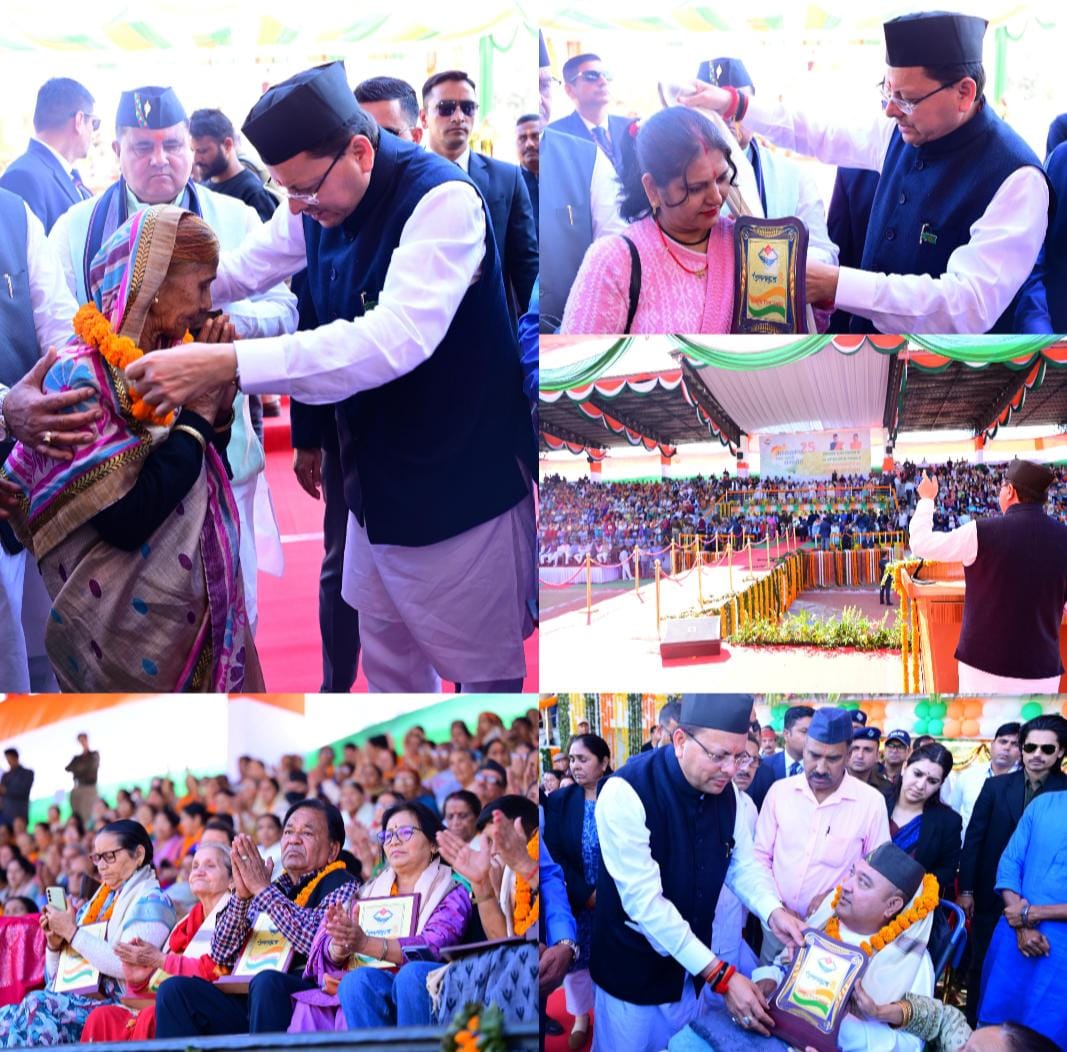 इसी क्रम मेंउत्तराखंड राज्य स्थापना के रजत जयंती वर्ष के अवसर पर मुख्यमंत्री ने पुलिस लाइन में आयोजित राज्य आंदोलनकारी सम्मान समारोह में राज्य आंदोलनकारियों और शहीद राज्य आंदोलनकारियों के परिवारजनों को सम्मानित किया। कचहरी परिसर शहीद स्थल और पुलिस लाइन देहरादून में इस अवसर पर राज्य आंदोलनकारियों पर हेलीकॉप्टर से पुष्प वर्षा भी की गई ।मुख्यमंत्री ने कहा कि उत्तराखंड राज्य का निर्माण केवल राजनीतिक निर्णय नहीं, बल्कि देवभूमि के लाखों लोगों के बलिदान, संघर्ष और तप का परिणाम है। उन्होंने कहा कि उत्तराखंड आंदोलन के दौरान खटीमा, मसूरी और रामपुर तिराहा जैसी दर्दनाक घटनाएं हमारे इतिहास के अमर अध्याय हैं। राज्य निर्माण में अपने प्राणों की आहुति देने वाले सभी ज्ञात-अज्ञात बलिदानियों को नमन करते हुए उन्होंने कहा कि राज्य सरकार आंदोलनकारियों के सम्मान को सर्वोच्च प्राथमिकता देती रही है और देती रहेगी। उन्होंने राज्य आंदोलनकारियों के लिए संचालित पेंशन एवं अन्य सुविधाओं का उल्लेख करते हुए कहा कि यह केवल सहायता नहीं, बल्कि हमारी कृतज्ञता का प्रतीक है।