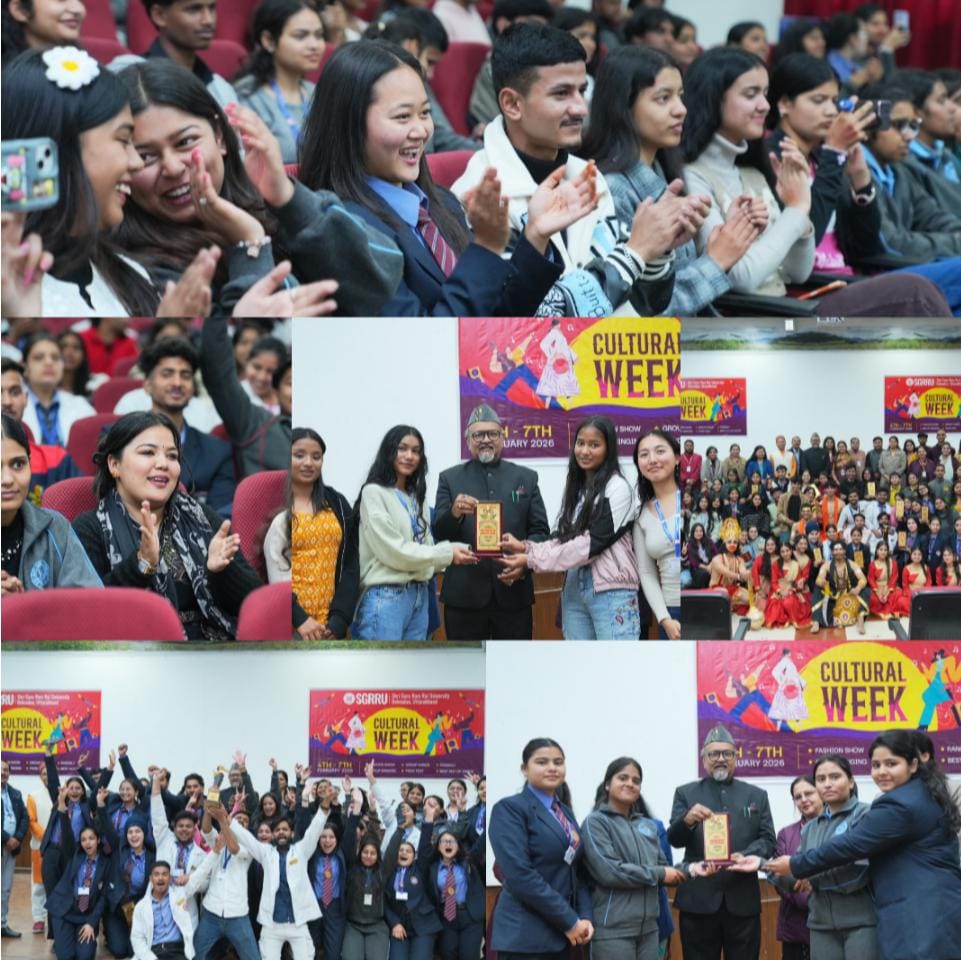 विश्वविद्यालय के कुलसचिव डॉ. लोकेश गंभीर ने कहा कि विश्वविद्यालय अकादमिक उत्कृष्टता के साथ-साथ सह-पाठ्यक्रम गतिविधियों में भी विद्यार्थियों को आगे बढ़ने के पर्याप्त अवसर प्रदान करता है। सांस्कृतिक सप्ताह जैसे आयोजन छात्रों को संगठन, अनुशासन एवं टीमवर्क का व्यावहारिक अनुभव प्रदान करते हैं डीन, स्टूडेंट वेलफेयर प्रो. (डॉ.) मालविका सती कांडपाल ने कहा कि विद्यार्थियों के मानसिक, सामाजिक एवं भावनात्मक विकास के लिए सांस्कृतिक कार्यक्रम अत्यंत आवश्यक हैं। उन्होंने जानकारी दी कि सांस्कृतिक सप्ताह के अंतर्गत आयोजित सभी प्रतियोगिताओं में विद्यार्थियों की सक्रिय सहभागिता रही प्रतियोगिताओं के सफल संचालन में सांस्कृतिक समिति एवं कल्चरल कमेटी के सदस्यों ने समन्वयक की महत्वपूर्ण भूमिका निभाई। सभी विद्यार्थियों ने उत्साहपूर्वक भाग लिया, जिससे कार्यक्रम अत्यंत सफल रहा कार्यक्रम में सांस्कृतिक समिति की चेयरपर्सन डॉ. प्रिया पांडे, चीफ प्रॉक्टर डॉ. गणराजन, विश्वविद्यालय के सभी स्कूलों के डीन, विभागाध्यक्ष, शिक्षकगण तथा बड़ी संख्या में छात्र-छात्राएँ उपस्थित रहे