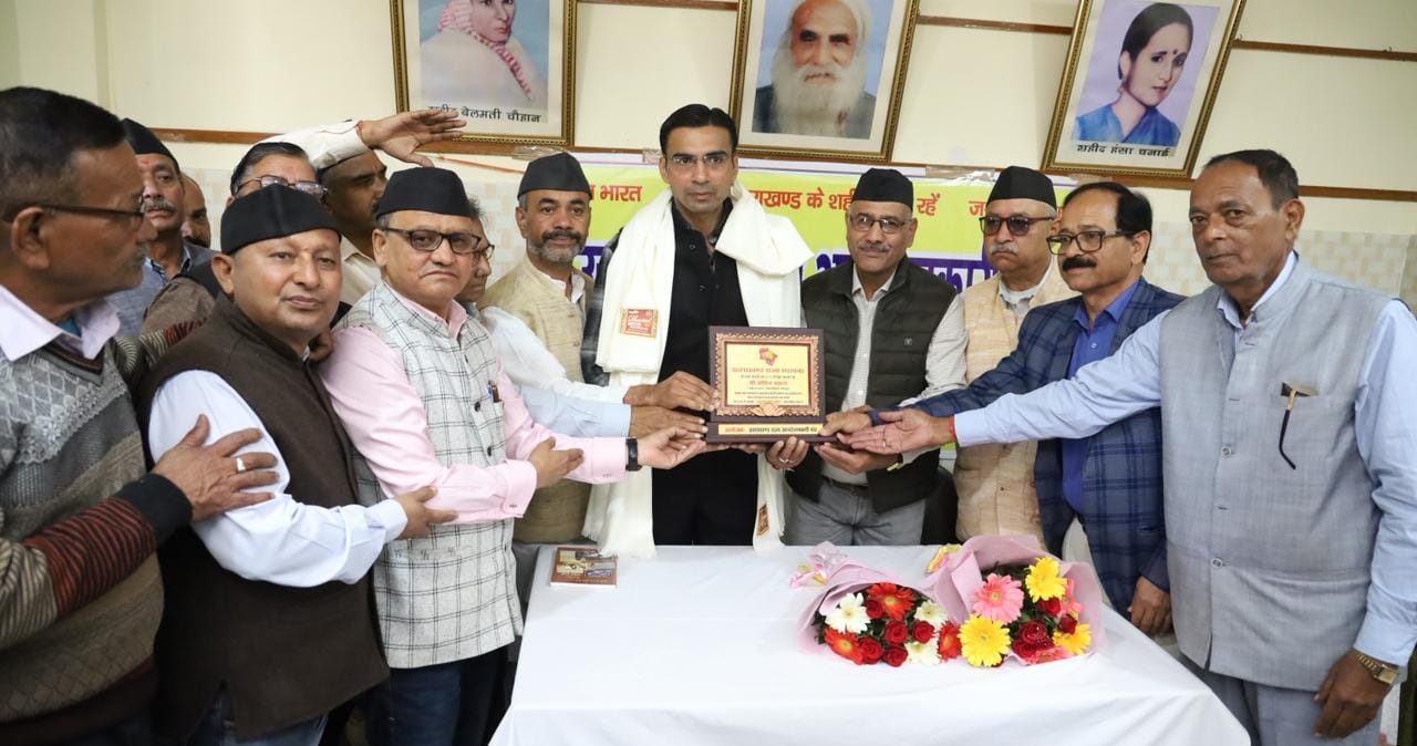 आज दिनांक 16-नवम्बर को उत्तराखण्ड राज्य आंदोलनकारी मंच द्वारा राज्य स्थापना दिवस पर प्रत्येक वर्ष समाज मॆं बेहतरीन कार्य करने हेतु मित्र सम्मान से सम्मानित किया जाता हैं। इस क्रम मॆं देहरादून के जिलाधिकारी को सम्मानित होना था। स्थापना दिवस के अवसर पर माननीय प्रधानमन्त्री के आगमन के व्यस्तता के चलते आज सुबह 11-30 बजे जिलाधिकारी शहीद स्मारक सभागार हाल मॆं पहुंचे जिसमें सभी राज्य आंदोलनकारी उनके सम्मान मॆं खड़े होकर ताली बजाकर स्वागत किया। पुष्पलता सिलमाणा एवं द्वारिका बिष्ट के साथ सत्या पोखरियाल व विजय लक्ष्मी गुसांई ने पुष्पगुच्छ देकर स्वागत किया। जगमोहन सिंह नेगी एवं डा॰ अतुल शर्मा के साथ रविन्द्र जुगरान व पृथ्वी सिंह नेगी और वेदा कोठारी ने शाल ओढ़ाकर सम्मानित किया। बैठक का संचालन करते हुये प्रदेश प्रवक्ता प्रदीप कुकरेती ने सभी राज्य आंदोलनकारियों को जिलाधिकारी द्वारा समाज के लियॆ किये गये अच्छे कार्यों और उनकी बेहतरीन कार्यशैली के बारे मॆं बताया। प्रदेश अध्यक्ष जगमोहन सिंह नेगी ने कहा क़ि हमने राज्य आन्दोलन से लेकर राज्य बनने तक कई अधिकारी देखें जिसमें बहुत अच्छे अधिकारी भी मिलें लेकिन देहरादून शहर मॆं अपनी अच्छे फ़ेसले और कार्यवाही से जन जन तक वाह वाही हुई हैं। इसके लियॆ माननीय मुख्यमन्त्री ने एक अच्छा अधिकारी देहरादून को दिया इससे जनमानस को तों लाभ मिला ही हैं साथ सरकार मॆं भी अच्छा सन्देश जाता हैं। पूर्व राज्य मन्त्री रविन्द्र जुगरान ने जिलाधिकारी की भूरी भूरी प्रशंसा करते हुये कहा क़ि जिलाधिकारी के प्रत्येक सोमवार को जनता दरबार से सेंकड़ों लोग लाभान्वित हो रहें हैं फिर चाहें बुजुर्ग लोगो की मदद हो या दिव्यांग और अनाथ के साथ आपदा मॆं अपने कार्यों से साबित किया जिलाधिकारी द्वारा अपने सम्बोधन मॆं मित्र सम्मान हेतु उत्तराखण्ड राज्य आंदोलनकारी मंच का आभार प्रकट किया। उन्होंने कहा क़ि कार्यों को अंजाम देना हमारी नैतिक जिम्मेदारी हैं जो हमें अपने वरिष्ठों और जनप्रतिनिधियों से भी प्रेरित करने का काम करता हैं। हम सरकार के कार्यों को जनता तक पहुंचाने के लियॆ प्रतिबद्ध हैं। मैं 1994 के उस दौर को समझ सकता हूं क़ि केसे आप अपने बच्चों को छोड़कर रात दिन संघर्ष कर जेल तक जाना पड़ा और उसी का परिणाम पृथक उत्तराखण्ड राज्य प्राप्ति हैं।