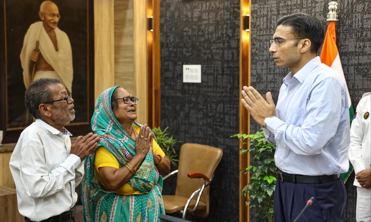 22 अगस्त 2025 को खुड़बुड़ा निवासी बुजुर्ग दम्पति जसंवत सिंह व उनकी पत्नी जिलाधिकारी कार्यालय कक्ष में उनसे मिलकर जिल पुत्र तथा पुत्रवधु द्वारा प्रताड़ित करने की शिकायत की तथा पुत्रवधु को बेदखल करने का अनुरोध किया।