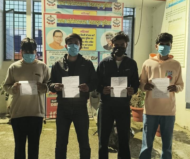 सोशल मीडिया पर वायरल एक वीडियो, जिसमें कुछ युवक क्लेमेंटटाउन क्षेत्र में सार्वजनिक स्थान पर लड़ाई झगड़ा करते हुए दिखाई दे रहे थे, उक्त वायरल वीडियो का संज्ञान लेते हुए एसएसपी देहरादून द्वारा तत्काल उक्त युवकों की तलाश कर उनके विरुद्ध आवश्यक वैधानिक कार्यवाही के निर्देश दिए गए, जिस पर थानाध्यक्ष क्लेमटाउन के नेतृत्व में टीम गठित कर त्वरित कार्रवाई करते हुए वीडियो में दिख रहे युवकों के संबंध में जानकारी एकत्र करते हुए 04 युवकों (1)-यश्वसी गौतम पुत्र श्री विनय कुमार गौतम, निवासी 150/2 कोतवाली चौराह हाथरस जिला अलीगड़ उत्तर प्रदेश (2)-वंश तोमर पुत्र वरुण तोमर निवासी तिशोतरा, जिला बिजनोर उतर प्रदेश (3)-ध्रुव शर्मा पुत्र रवि शंकर शर्मा, निवासी 1043 इन्द्रानगर कालोनी , बसंत बिहार देहरादून (4)- कृष्णा राठी पुत्र कर्मवीर राठी निवासी कृष्णा मार्केट, क्लेमेंट टाउन देहरादून को हिरासत में लिया गया, जिनके विरुद्ध आवश्यक वैधानिक कार्यवाही की गई।