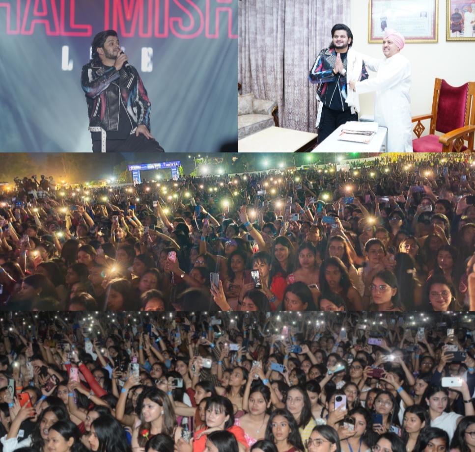 श्री गुरु राम राय विश्वविद्यालय (एसजीआरआरयू) में मंगलवार को आयोजित ‘जेनिथ 2026’ का अंतिम दिन पूरी तरह संगीत और रोमांटिक गीतों की प्रस्तुतियों के नाम रहा, जहां प्रसिद्ध बालीवुड गायक मिशाल मिश्रा कॉन्सर्ट ने माहौल को यादगार बना दिया. विशाल मिश्रा ने कार्यक्रम शुरू होने से पूर्व श्री दरबार साहिब में माथा टेका और श्री दरबार साहिब के सज्जादे गद्दी नशीन पूजनीय श्री महंत देवेन्द्र दास जी महाराज से आशीर्वाद लिया. श्री दरबार साहिब की परंपरा के अनुसार उनका स्वागत किया गया.कार्यक्रम के दौरान भारतीय संगीत जगत की दिग्गज गायिका आशा भोसले को भावभीनी श्रद्धांजलि भी अर्पित की गई, जिससे आयोजन में भावनात्मक रंग भी जुड़ गया। इस अवसर पर विश्वविद्यालय के माननीय प्रेसिडेंट पूजनीय श्रीमहंत देवेन्द्र दास जी महाराज ने अपने संदेश में कहा कि आशा भोसले जैसी महान विभूतियों ने अपने सुरों से देश की आत्मा को स्वर दिया है, उनका योगदान सदैव प्रेरणास्रोत बना रहेगा।” मंगलवार को पथरी बाग स्थित एसजीआरआर विश्वविद्यालय के हेलीपैड ग्राउंड पर हाई वोल्टेज साउंड और शानदार लाइटिंग के बीच विशाल मिश्रा के सुप्रसिद्ध बॉलीवुड गीतों की गूंज ने हजारों दर्शकों को झूमने पर मजबूर कर दिया। दो दिवसीय वार्षिक सांस्कृतिक महोत्सव के अंतिम दिन लव सॉन्ग्स की खास धूम रही, जिसने खासकर युवा वर्ग में जबरदस्त उत्साह भर दिया। हज़ारों की संख्या में उपस्थित विश्वविद्यालय के छात्र-छात्राओं ने विशाल मिश्रा कॉन्सर्ट का भरपूर लुत्फ उठाया। बालीवुड गायक विशाल मिश्रा के सुरों से सजी स्टार नाइट में रोमांस का ऐसा जादू छाया कि पूरा माहौल रोमांटिक हो उठा। अपनी भावपूर्ण आवाज और दिल को छू लेने वाली प्रस्तुति के लिए मशहूर विशाल मिश्रा ने स्टेज पर एक के बाद एक कई शानदार परफॉर्मेंस देकर दर्शकों को मंत्रमुग्ध कर दिया। “पहले भी मैं”, “कैसे हुआ”, “जानिये”, “तेरी हो गईयां”, “दिल झूम”, “जिआल ए मिस्किन”, “चल तेरे इश्क में”, “मांझा” और “क्या बताऊं तुझे” जैसे सुपरहिट लव सॉन्ग्स की प्रस्तुति ने खासतौर पर युवाओं और कपल्स के दिलों में अलग ही उत्साह भर दिया। जेनजी जनरेशन की भावनाओं, उनके प्यार के अंदाज और आधुनिक रिश्तों की नजाकत को बखूबी दर्शाते हुए विशाल मिश्रा ने अपनी गायकी से हर दिल को जोड़ दिया। उनकी हर प्रस्तुति पर दर्शक झूम उठे और मोबाइल फ्लैशलाइट्स के बीच बना रोमांटिक माहौल देर रात तक यादगार बना रहा। इस अवसर पर एसजीआरआरयू के कुलपति डॉ के प्रतापन, कुलसचिव डॉ लोकेश गम्भीर, जैनिथ आयोजन समिति के सभी कमेटियों के पदाधिकारी सहित सभी संकायों के संकायाध्यक्ष, फैकल्टी सदस्य, स्टाफ एवम् हजारों की संख्या में छात्र-छात्राएं भी उपस्थित रहे। श्री गुरु रा