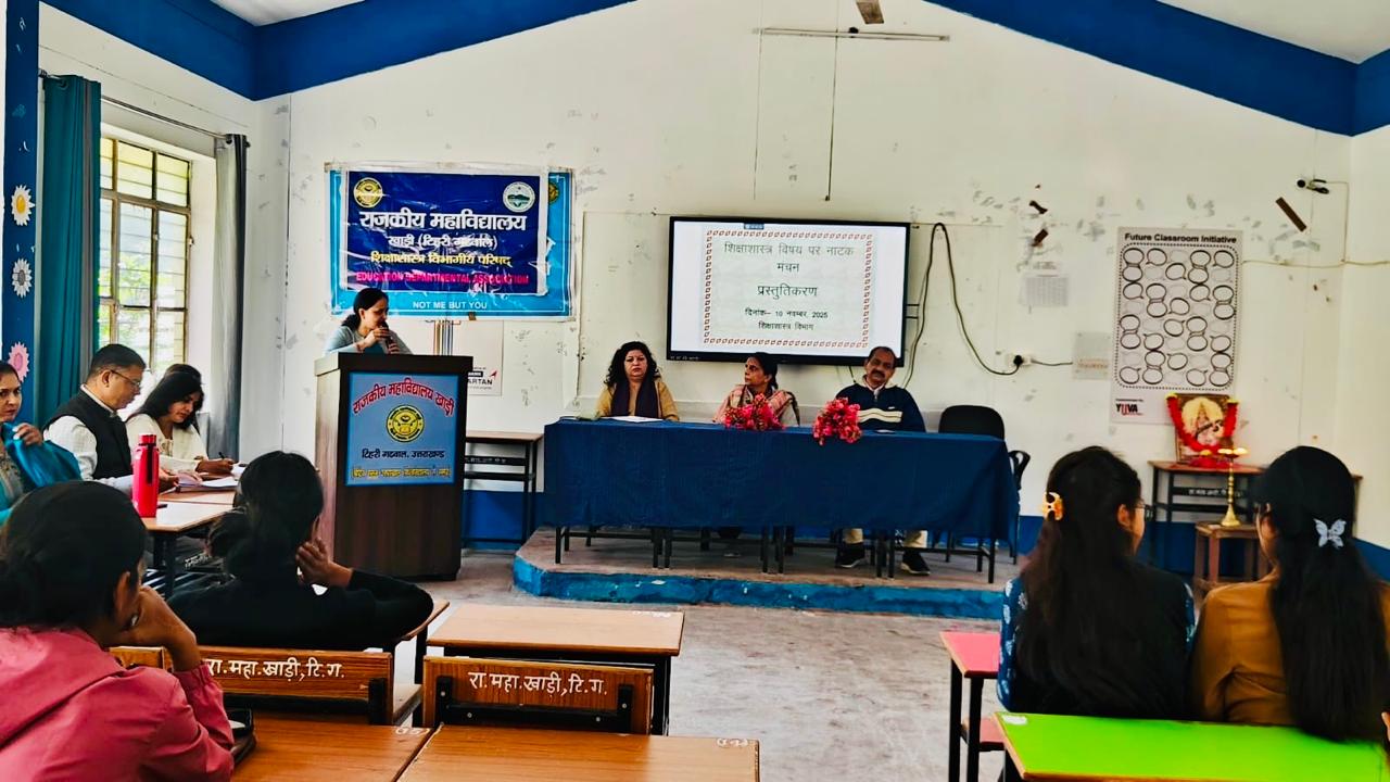 राजकीय महाविद्यालय खाड़ी में दिनांक 10 नवम्बर 2025 को शिक्षा शास्त्र विभागीय परिषद का गठन किया गया। परिषद में कल्पना को अध्यक्ष, भारती को उपाध्यक्ष, शिवानी को कोषाध्यक्ष तथा मीनाक्षी को सचिव नियुक्त किया गया। वहीं आयुषी एवं निशा को सदस्य बनाया गया। इस अवसर पर शिक्षा शास्त्र विषय की विषयवस्तु पर आधारित नाट्य मंचन का सृजनात्मक और प्रभावशाली प्रस्तुतीकरण छात्र-छात्राओं द्वारा किया गया। विद्यार्थियों ने शिक्षा शास्त्र की मूल अवधारणाओं, उद्देश्यों एवं व्यावहारिक उपयोगिता को जीवन्त अभिनय के माध्यम से दर्शाया।