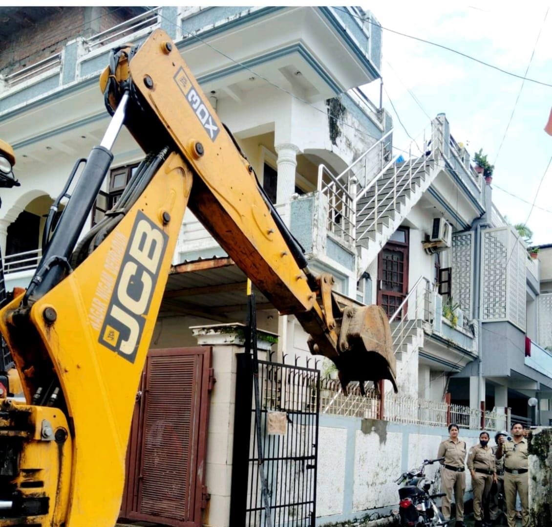 जिलाधिकारी के निर्देशों के अनुपालन में जेब्रा फोर्स महिला एवं पुलिस बल के साथ नगर निगम एवं प्रशासन की टीम द्वारा सिरमौर मार्ग पर सार्वजनिक रास्ते पर अतिक्रमण कर बनाए गए गेट को ध्वस्त कर दिया है।