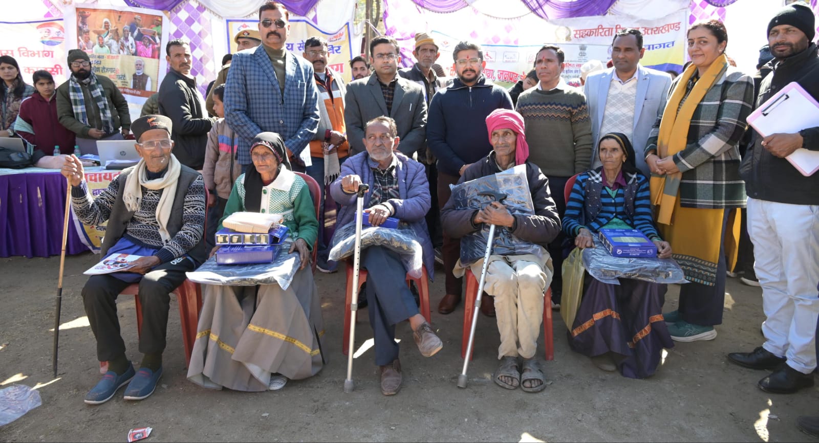 समाज कल्याण विभाग द्वारा प्रधानमंत्री दिव्यांशा केंद्र, देहरादून के सहयोग से एडिप एवं राष्ट्रीय वयोश्री योजना के अंतर्गत 40 दिव्यांगजनों एवं वरिष्ठ नागरिकों को कुल 120 सहायक उपकरण निःशुल्क वितरित किए गए तथा 05 वृद्धजनों की पेंशन हेतु बैंक खाते आधार से सीड किए गए।
