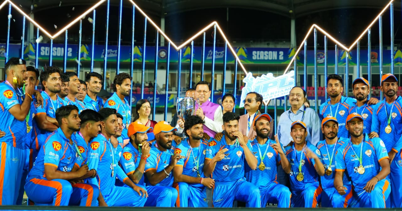 पुरुष यूपीएल सीजन-2 के फाइनल में हरिद्वार एल्मास ने नैनीताल टाइगर्स को 4 विकेट से हराकर चैंपियन बना। मुख्य अतिथि मुख्यमंत्री पुश्कर सिंह धामी ने विजेता व उपविजेता टीम को ट्राफी प्रदान की राजीव गांधी इंटरनेषनल क्रिकेट स्टेडियम में रविवार को पुरूश यूपीएल का फाइनल मैच नैनीताल टाइगर्स और हरिद्वार एल्मास के बीच खेला गया। टाॅस जीतकर हरिद्वार एल्मास ने क्षेत्ररक्षण का फैसला लिया। पहले बल्लेबाजी करने उतरी नैनीताल टाइगर्स को पहला झटका दूसरे ओवर की तीसरी गेंद पर ध्रुव प्रताप सिंह 15 रन के स्कोर पर लगा। ध्रुव प्रताप सिंह ने 12 रन बनाए। आरव महाजन 2 रन के स्कोर पर पवेलियन लौट गए। उसके बाद राहुल राज और भूपेन लालवानी ने संभलकर खेलते हुए स्कोर को आगे बढाया। राहुल राज 29 और भूपेन लालवानी ने 35 रन बनाए। इसके बाद षास्वत डंगवाल ने नाबाद 52 रन की अर्धषतकीय पारी की बदौलत नैनीताल ने निर्धारित 20 ओवर में छह विकेट खोकर 148 रन को स्कोर बनाया। हरिद्वार एल्मास की ओर से प्रषांत भाटी ने 2, सुमित जुयाल व हरजीत सिंह ने एक-एक विकेट चटकाया। 149 रनों के लक्ष्य का पीछा करने उतरी हरिद्वार एल्मास ने षुरूआत में अपना पहला विकेट गंवा दिया। पहले ओवर की दूसरी गेंद में हिमांषु सोनी खाता खोले बिना ही पवेलियन लौट गए। दूसरे छोर को संभाले हुए कप्तान कुनाल चंदेल गेंदबाजों के षिकार में फंस गए और 33 रन बनाकर आउट हो गए। तीसरा विकेट प्रियांषु खंडूरी 6 रन पर गिरा। नीरज राठौर औार सौरभ चैहान ने पारी को संभालने की कोषिष की लेकित 78 रनों के स्कोर पर नीरज राठौर कैच दे बैठे। नीरज राठौर ने 17 रन, सौरभ चैहान ने 25, विषाल डंगवाल ने 23 रन बनाए। उजैर मलिक ने नाबाद 22 और सिद्वार्थ गुप्ता ने नाबाद 15 रन बनाकर टीम को चार गेंद षेश रहते हुए जीत हासिल कर ली। नैनीताल के लिए विषाल कुमार सैनी ने 2, अनमोल षाह, सत्यम बालियान, ध्रुव प्रताप सिंह व दीक्षास नेगी ने एक-एक विकेट लिया। यूपीएल के समापन पर मुख्य अतिथि पुश्कर सिंह धामी ने विजेता व उपविजेता टीम को ट्राफी प्रदान की। पुरूश विजेता टीम को 25 लाख और उपविजेता टीम को 12 लाख रूप्ये का पुरस्कार दिया गया