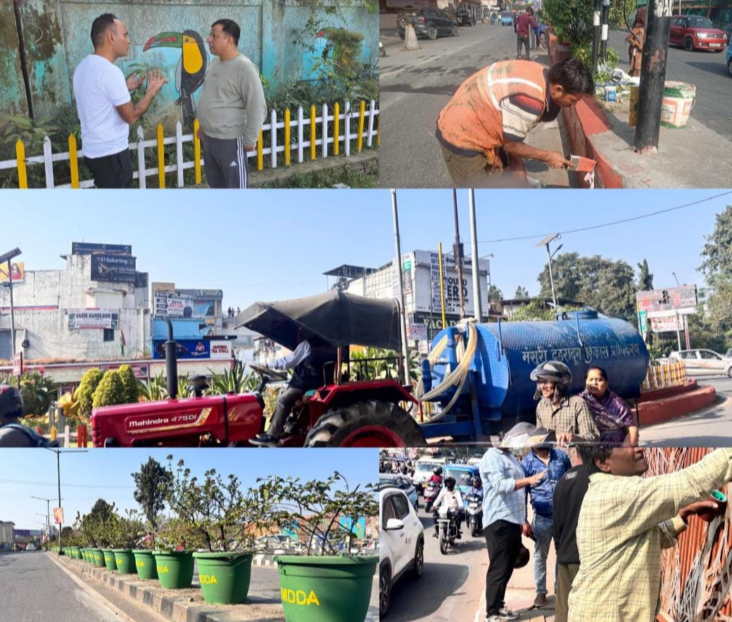 एमडीडीए इन दिनों राजधानी की प्रमुख सड़कों को सुंदर और आकर्षक बनाने में लगा है। राजपुर रोड पर डिवाइडरों की पेंटिंग, पौधरोपण और दीवारों पर भित्तिचित्र (म्यूरल आर्ट) बनाने का कार्य युद्धस्तर पर चल रहा है। दिलाराम चौक से हाथीबड़कला तक की दीवारें अब रंग-बिरंगी पेंटिंग से सजी हैं, जो राहगीरों को स्वच्छता और पर्यावरण संरक्षण का संदेश दे रही हैं। प्राधिकरण का उद्देश्य है कि देहरादून का हर कोना “क्लीन एंड ग्रीन सिटी” की पहचान को दर्शाए।