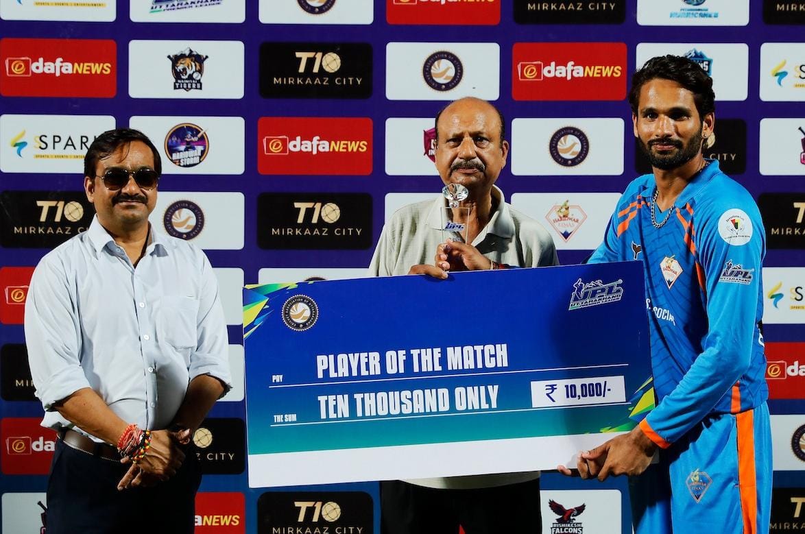 हरिद्वार के लिए अभय छेत्री ने 3/18 की गेंदबाजी की जबकि सिद्धार्थ गुप्ता ने 2 विकेट लिए और केवल 8 रन खर्च किए, जिसमें अंतिम ओवर के दौरान सागर रावत का विकेट भी शामिल था।