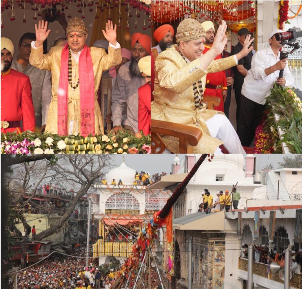 उपस्थिति में श्री गुरु राम राय जी महाराज के जन्मदिवस के अवसर पर आयोजित ऐतिहासिक श्री झण्डा साहिब का भव्य आरोहण हुआ जैसे ही श्री दरबार साहिब के सज्जादे गद्दी नशीन श्रीमहंत देवेन्द्र दास जी महाराज के संदेश पर आरोहण की प्रक्रिया आरंभ हुई, पूरी द्रोणनगरी श्री गुरु महाराज जी के जयकारों से गूंज उठी। ठीक शाम 4 बजकर 12 मिनट पर 94 फीट ऊंचे पवित्र श्री झण्डे जी का आरोहण पूर्ण हुआ। इस दिव्य क्षण का साक्षी बनते ही संगतों ने “जय श्री गुरु राम राय जी महाराज” और जय श्रीमहंत देवेन्द्र दास जी महाराज के गगनभेदी जयकारे लगाए और ढोल-नगाड़ों की थाप पर झूम उठे। इसी के साथ देहरादून की ऐतिहासिक और सांस्कृतिक धरोहर श्री झण्डे जी मेले का विधिवत शुभारंभ हो गया आस्था के महाकुंभ में उमड़ा जनसैलाब रविवार को सूर्योदय से पहले ही श्री दरबार साहिब परिसर और आसपास के क्षेत्रों में श्रद्धालुओं की भारी भीड़ उमड़ पड़ी। देश-विदेश से आई संगतों ने श्रद्धा और भक्ति भाव से श्री झण्डे जी के समक्ष शीश नवाया और श्री गुरु महाराज जी के दर्शन कर अपने जीवन को धन्य माना। पूरे परिसर में तिल रखने तक की जगह नहीं थी। हर कोई गुरु महाराज की कृपा पाने और श्री झण्डा साहिब के समक्ष मत्था टेकने को आतुर दिखाई दिया।