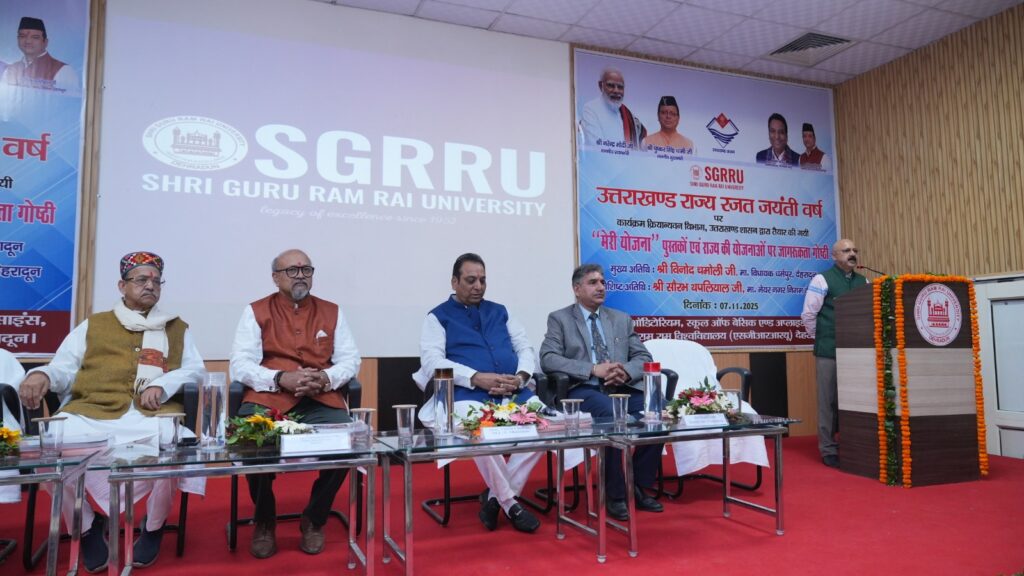 उत्तराखण्ड राज्य स्थापना दिवस के अवसर पर शुक्रवार को श्री गुरु राम राय विश्वविद्यालय में एक विशेष कार्यक्रम का आयोजन किया गया। कार्यक्रम क्रियान्वयन विभाग, उत्तराखण्ड शासन द्वारा “मेरी योजना” पुस्तकों के सम्बन्ध में एक जागरूकता गोष्ठी आयोजित की गई। इस गोष्ठी का उद्देश्य विद्यार्थियों एवं नागरिकों को राज्य व केन्द्र