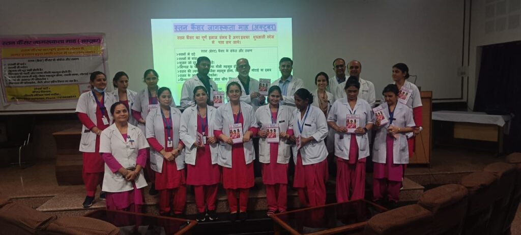 जागरूकता व्याख्यान आयोजित किया गया। इस सत्र में 100 से अधिक नर्सों ने भाग लिया। उन्हे पहले स्वय स्तन की स्व-परीक्षा, फिर अपने परिवार के सदस्यों को प्रेरित करने और उसके बाद समाज में इस जागरूकता को फैलाने के लिए प्रोत्साहित किया गया।