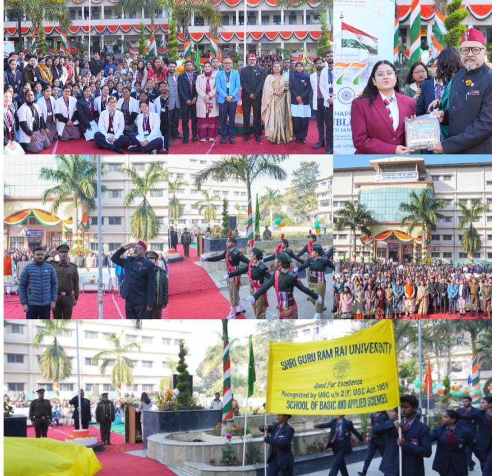 जी महाराज ने प्रातः 9 बजे तिरंगा फहराकर देश और प्रदेशवासियों को गणतंत्र दिवस की शुभकामनाएं दीं। उन्होंने अपने संदेश में राष्ट्र की एकता, अखंडता और भारतीय मूल्यों को आत्मसात करने का आह्वान किया श्री गुरु राम राय विश्वविद्यालय परिसर में कुलपति प्रो. (डॉ.) के. प्रतापन ने राष्ट्रीय ध्वज फहराया तथा अनुशासित परेड की सलामी ली। विश्वविद्यालय के एनसीसी कैडेट्स, एन एस एस