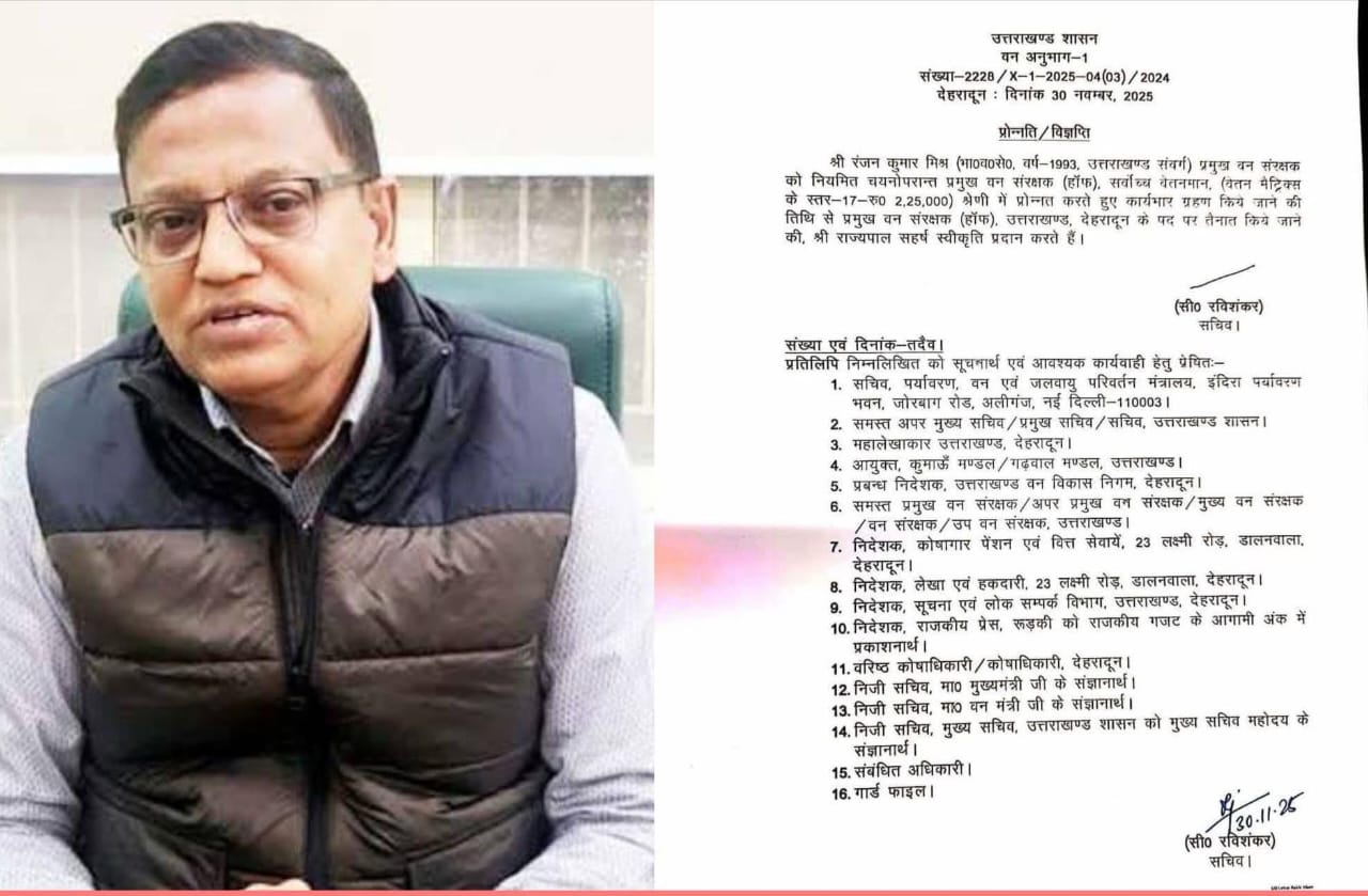 वरिष्ठ IFS अधिकारी रंजन कुमार मिश्र बने उत्तराखंड वन विभाग के नए मुखिया