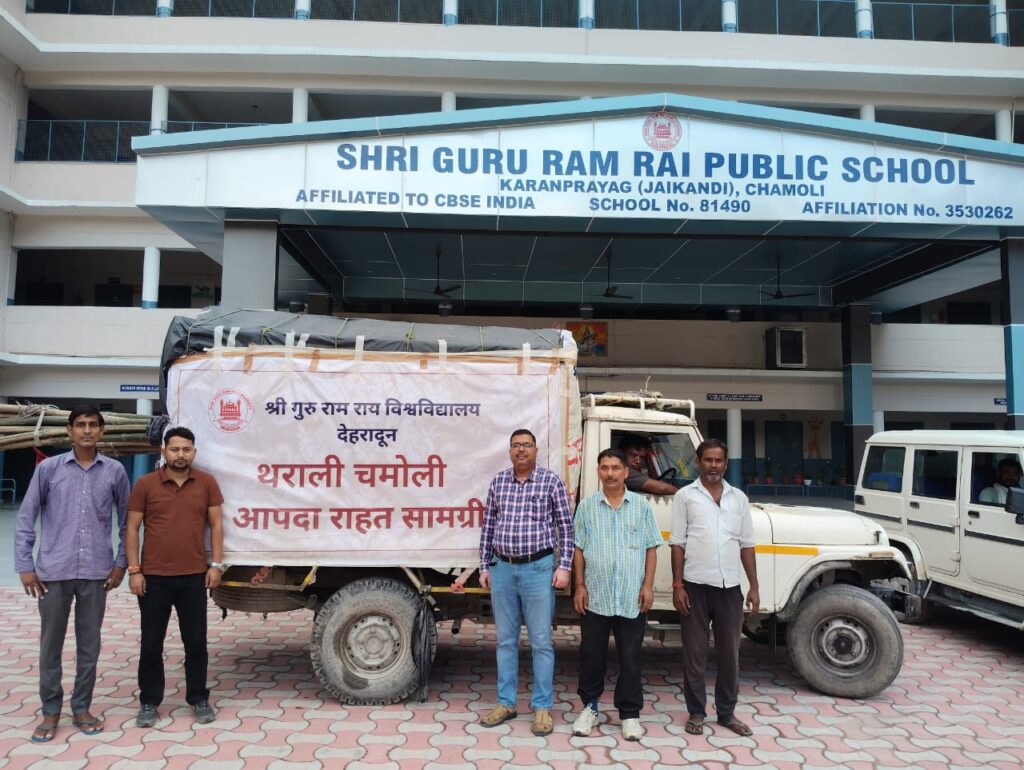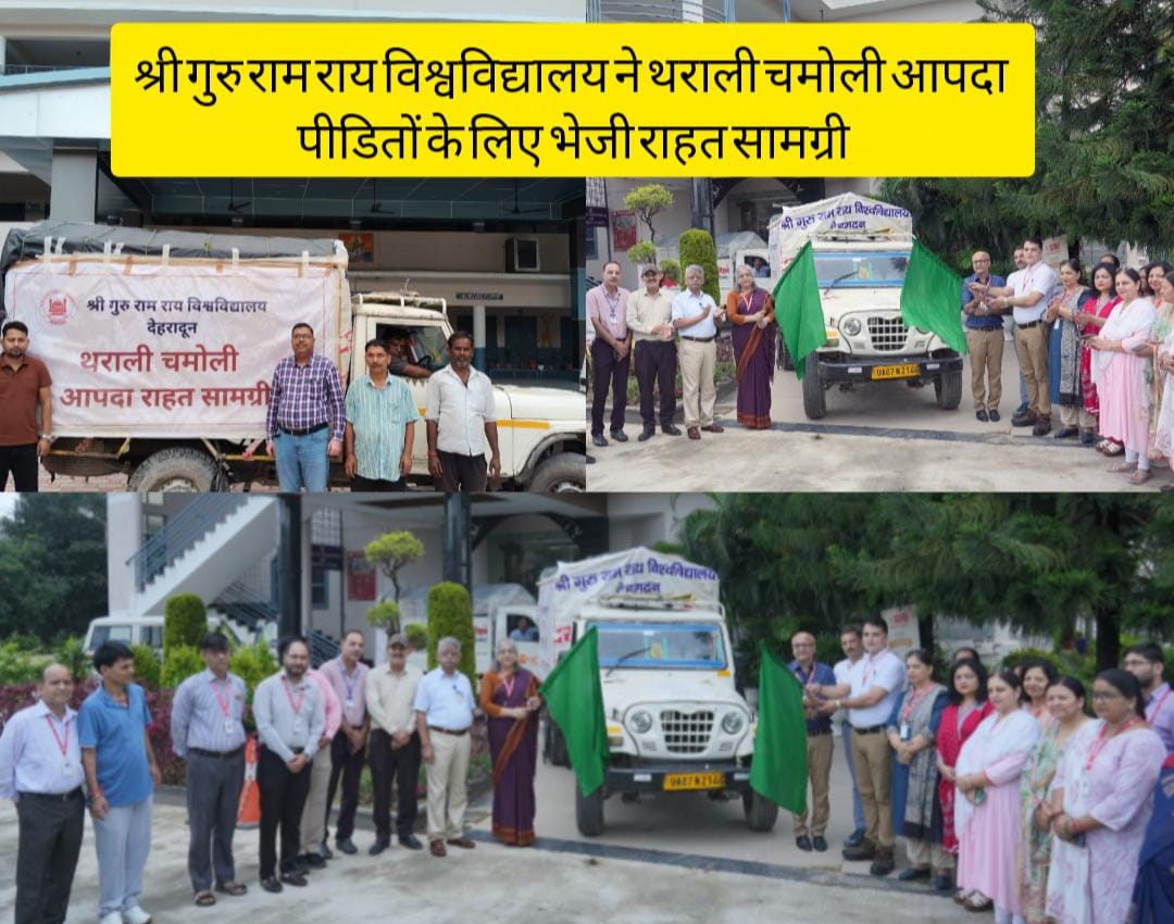 श्री गुरु राम राय विश्वविद्यालय ने थराली (चमोली) आपदा प्रभावितों के लिए राहत एवम् खा़द्य सामग्री भेजी। सोमवार को श्री गुरु राम राय विश्वविद्यालय की कुलपति प्रो. डॉ. कुमुद सकलानी और रजिस्ट्रार डॉ. लोकेश गंभीर ने राहत सामग्री से लदे वाहनों को हरी झंडी दिखाकर रवाना किया। श्री गुरु राम राय विश्वविद्यालय के